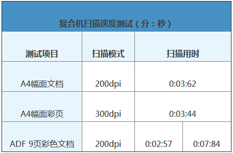 單頁掃描不論黑白還是彩色用時(shí)不到4秒,非常快。而用ADF掃描9頁彩頁僅用時(shí)7秒84,換算得到速度為113ppm,充分展現(xiàn)出bizhub C658風(fēng)馳電掣的掃描性能。