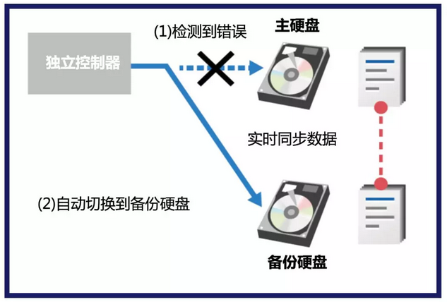 可實時同步主硬盤和備份硬盤上的數據